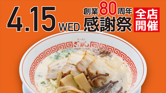 【ざぼんラーメン】創業80周年、鹿児島と共に歩んだ「ざぼんラーメン」が感謝祭を開催