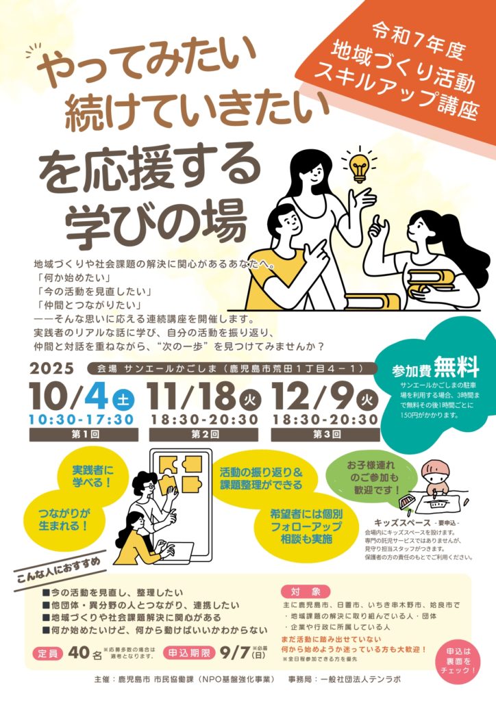 参加者募集中!『やってみたい』『続けていきたい』を応援する学びの場(令和7年度 地域づくり活動スキルアップ講座)