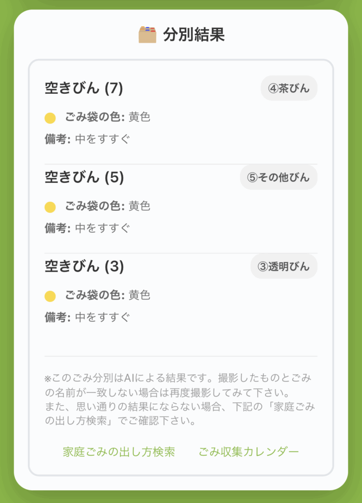 サブ画像2:AIごみ分別の画面②「回答」