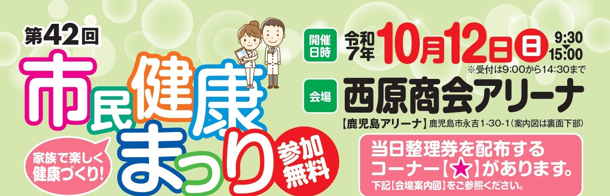 【市民健康まつり実行委員会】第42回市民健康まつり10月12日(日)開催  於:西原商会アリーナ(鹿児島アリーナ)