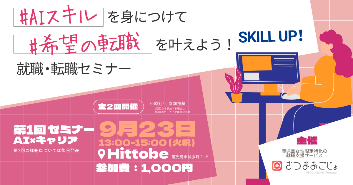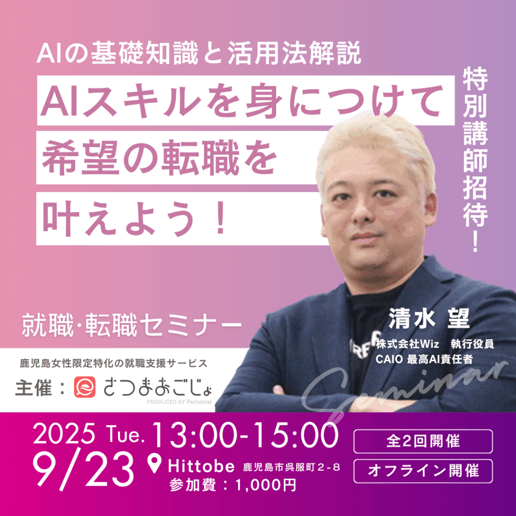 【さつまおごじょ】鹿児島女性限定【就職・転職セミナー】AIスキルを身につけて希望の転職を叶えよう!