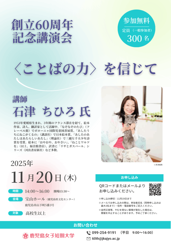 【鹿児島女子短期大学】11/20(木)創立60周年記念講演会in宝山ホール