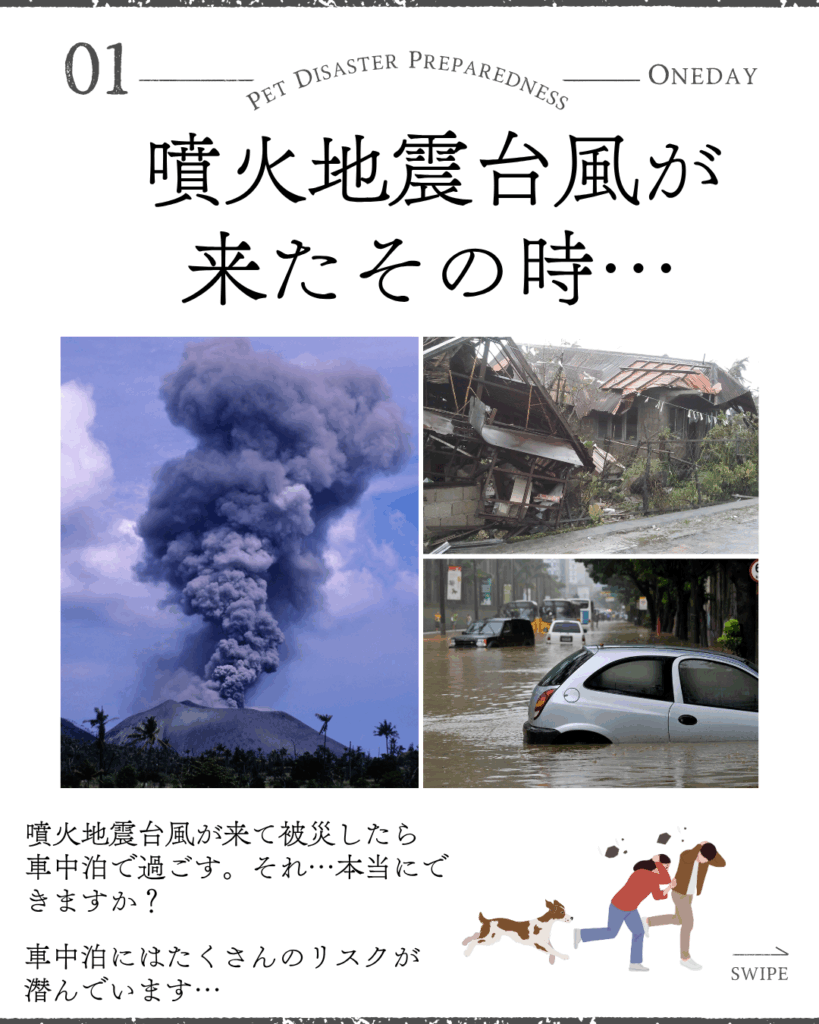 車中泊は“手軽な避難の選択肢”と捉えられがちですが、ペットを同伴する場合には、温度管理、換気、夜間の安全確保、給水・排泄のコントロールなど、多くの工夫が必要です。