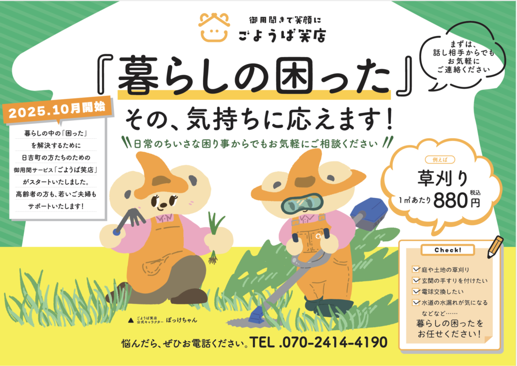 鹿児島県日置市で、日常生活のちょっとした困りごとを解決する御用聞きサービス「ごようば笑店」がスタートしました。