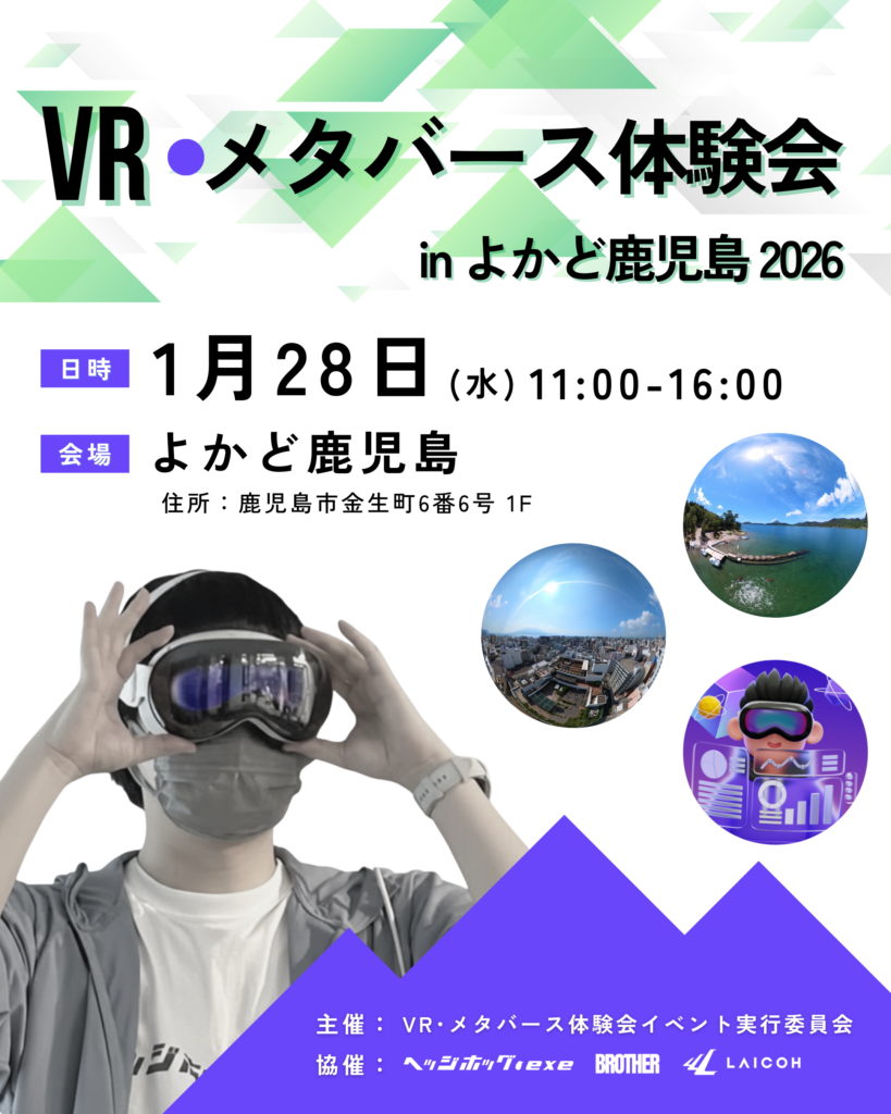 【VR・メタバース体験会実行委員会】『VR・メタバース体験会 in 鹿児島』開催のお知らせ