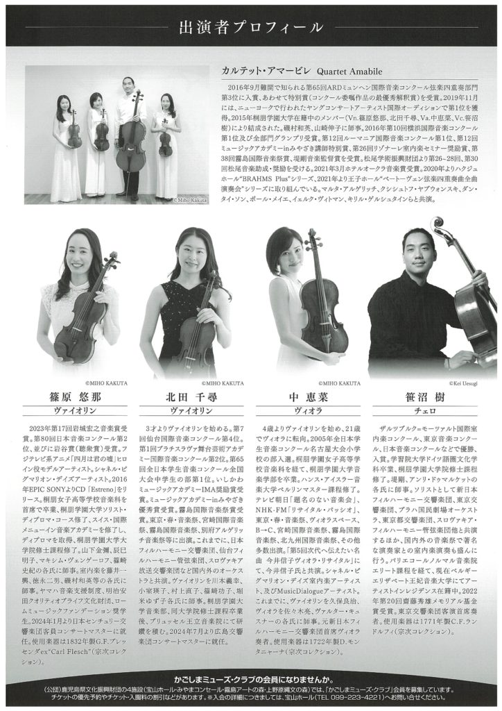 宝山プレゼンツ「カルテット・アマービレ」公演のお知らせ